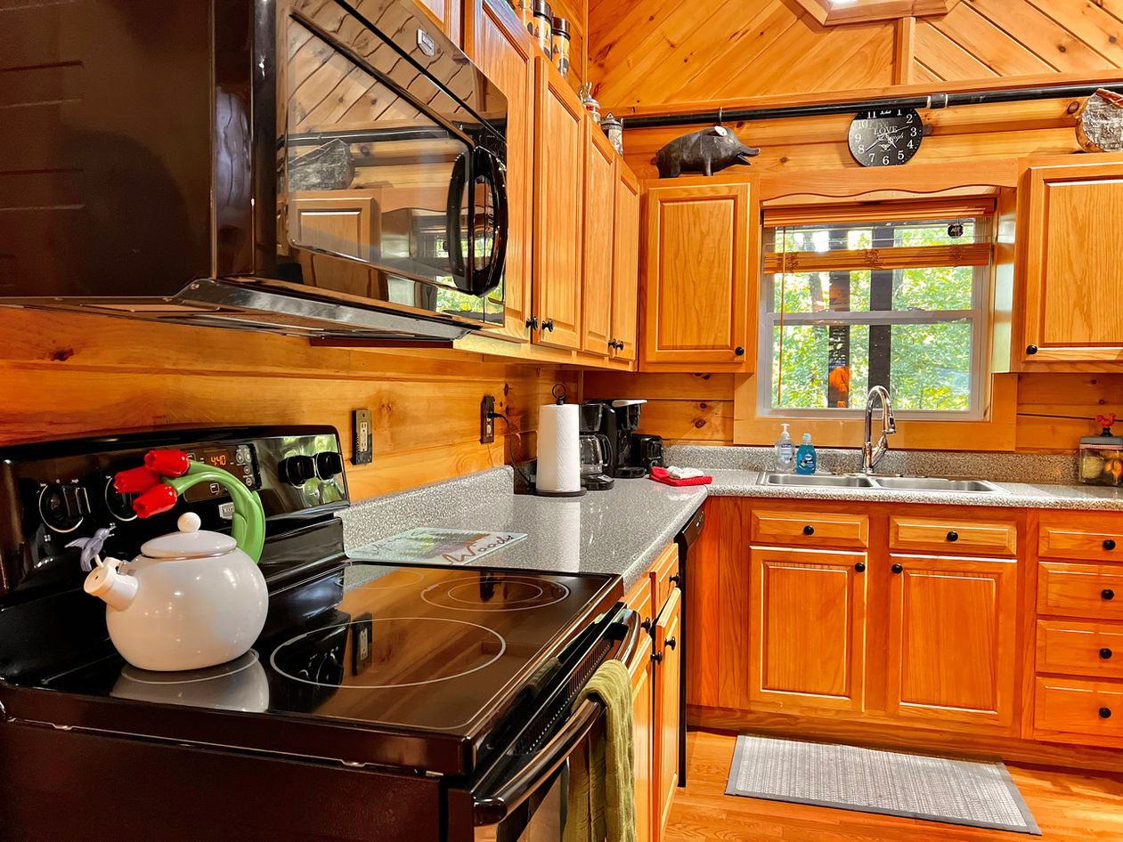 GET AWAY FROM IT ALL at Eagle Nest Cabin After a full day's activities in Branson, come home and relax in our cozy real log cabin. This wooded location will allow you to get away from it all! With 3 bedrooms and 2 baths, this cabin sleeps 9. Cook a meal in your fully stocked kitchen or gather around the fire pit in the back yard for a special evening. Eagle Nest Cabin is located just 10.5 miles from the 76 Strip and 11 miles from Branson Landing. This is a perfect spot to get away from the busy 76 strip and come home to relaxation and quiet. You are not in a development, so you don't have any neighbors right next door to you. You are so close to the great dining places at Big Cedar (only 8/10ths of a mile away) and Top of the Rock is only 1.5 miles away!! Perfect location to be able to get to things quickly but have your own space too. Log beds and dressers. Peaceful Location Don't settle for an ordinary room when you can stay in a lovely, family owned home with plenty of space and privacy where you can feel right at home from the moment you arrive. Let our home enhance your special vacation memories in Branson! * Independent property (not in a development). * Wooded lot * Less than 1 mile from great dining at Big Cedar * 1 1/2 miles from Top of the Rock * 10 1/2 miles from the famous 76 strip * 11 miles from Branson Landing KITCHEN The kitchen if fully stocked with a coffee maker, dishes/utensils, dishwasher, microwave, electric stove, oven, refrigerator, ice make, and toaster. BEDROOMS 3 Bedrooms, sleeps 9. TV in each bedroom -Bedroom 1-Queen -Bedroom 2- Queen -Bedroom 3-Full plus single bunk bed Sofa sleeper in living room BATHROOMS 2 Bathrooms with toilet and shower/tub combination AMENITIES * Fire pit * Propane grill We provide great customer service and are always available for any questions or needs you may have. Stay with Beth's Breakaways and we guarantee you will have a vacation to reminisce about for years to come! Please contact us at 417-331-0176 or 319-461-0845.