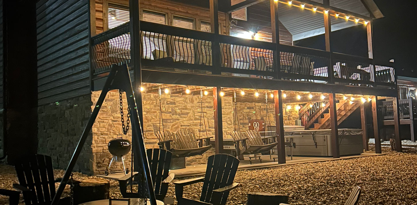 12x28 Boat Slip Included! Golf Cart Included! Pack your bags for an unforgettable lakefront getaway at Emerald Cove Lodge at Jax Creek! This 4-bedroom, 4-bath rustic-luxury lodge sits directly on Table Rock Lake and comes with its own boat slip, golf cart, and all the comforts of home—plus plenty of extras for fun and relaxation. Enjoy breathtaking lake views from the massive covered deck, relax in the private hot tub, gather around the firepit, or challenge friends to outdoor ping pong and indoor shuffleboard. With a chef’s kitchen, spacious living areas, and resort amenities like a swim dock, pool, hot tub, and hiking trails, this is your perfect Branson escape. FEATURES - Lakefront with stunning views - Private hot tub & firepit - Outdoor ping pong - Indoor shuffleboard - Chef’s kitchen & spacious open layout - Golf cart included - 12x28 boat slip included - 2 Kayaks LAYOUT Main Level - King bedroom w/ ensuite bath - King bedroom w/ ensuite bath - kitchen, dining, living area - large covered deck Upper Level - King bedroom & bunk bed (twin over twin) w/ ensuite bath - King bedroom & bunk bed (twin over twin) w/ bathroom down the hall - Game area RESORT AMENITIES - Swim dock for swimming/fishing - Kayaks - Community pool & hot tub (seasonal) - Hiking trails - Boat ramp nearby Minutes from Silver Dollar City and Branson attractions, this home has everything you need for a relaxing, memory-filled lake vacation!