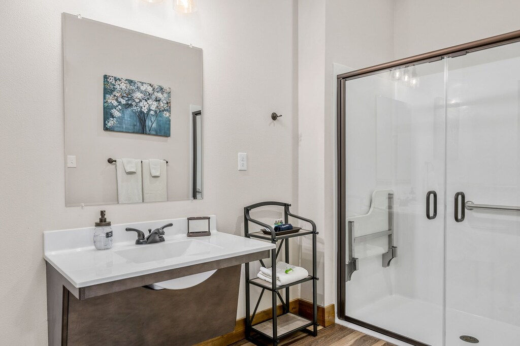 Bathrooms have hair dryers and are stocked with guest bath towels, toilet paper, shampoo, conditioner, soap, body wash. (Please bring your own towels for use at the pool, lake, etc.)