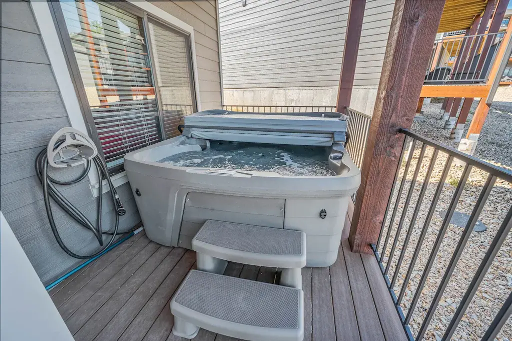 12x28 BOAT SLIP INCLUDED FREE! SLEEPS 16-18 MAIN LEVEL * Bedroom 1: King Bed with bath with direct access to back deck * Bedroom 2: King Bed with bath with walk-in shower * Queen sleeper in living area * 1/2 bath LOWER LEVEL-Bedrooms 3 and 4 share bath, bedrooms 5 and 6 share bath * Bedroom 3: Two queen bunk beds connected to Jack and Jill bath * Bedroom 4: King bed connected to Jack and Jill bath * Bedroom 5: King bed connected to Jack and Jill bath * Bedroom 6: Two queen bunk beds connected to Jack and Jill bath THE LOCATION This cozy cabin is ideally located right on Indian Point and the shores of Table Rock Lake! You are 4/10th of a mile from Indian Point Marina for renting a boat or jet ski. You can walk to the lake to fish and swim. You can even rent boat slips right on site!! Key Features: - Boat slip included! Bring your boat and launch at Indian Point marina. - Amenities include a fully equipped kitchen with granite countertops, free Wi-Fi, flat-screen cable TVs, central air conditioning and heat, pack-n-play, laundry machines, electric fireplace, gas grill on the covered private deck, and more! -Games in the home include blackjack table, mini shuffleboard with bowling pin game. Pac-Man and other electronic games, Sequence Dominos, Bean bags. -Provided supplies: toilet paper, paper towels, hand soap, dish soap, dish washer soap, laundry soap, shampoo, body wash, and conditioner. JAX KLASSIC: Look no further! You have found the perfect place for your next fun Branson getaway! Located in a premiere resort on Indian Point, Jax Klassic has an atmosphere ranging from Captain "Jax" Sparrow and other pirate and sea decor to Black "Jax" gaming options, and old fashioned "Jax" and other games. This cabin overlooks the community pool and hot tub and also has its own private hot tub on the back deck. Perfect for family gatherings or retreats. This is an ideal location on Indian Point, very close to Silver Dollar City-just 3 miles away. Ten minutes from the 76 Strip! Gorgeous 6 bedroom/ 4-1/2 bath cabin with soaring ceilings and an open floor plan and electric fireplace in the living area. This cabin features two decks with plenty of seating and will be perfect to watch the family enjoy the amenities at the resort. Your group will love the playful and entertaining interiors made to relax and enjoy. Boat slip is included FREE with this rental. ******************************************************************************************* RESORT AMENITIES Community swimming pool open seasonally, usually mid-May to September Community hot tub open seasonally Swim dock for swimming or fishing, this is located at the same spot your boat slip is. Kayaks available for check out from the resort (only Memorial Day to Labor Day) Pickleball & Basketball court Boat Ramp Walking trails Charcoal Grills We provide great customer service and are always available for any questions or needs you may have. Stay with Beth's Breakaways and we guarantee you will have a vacation to reminisce about for years to come!