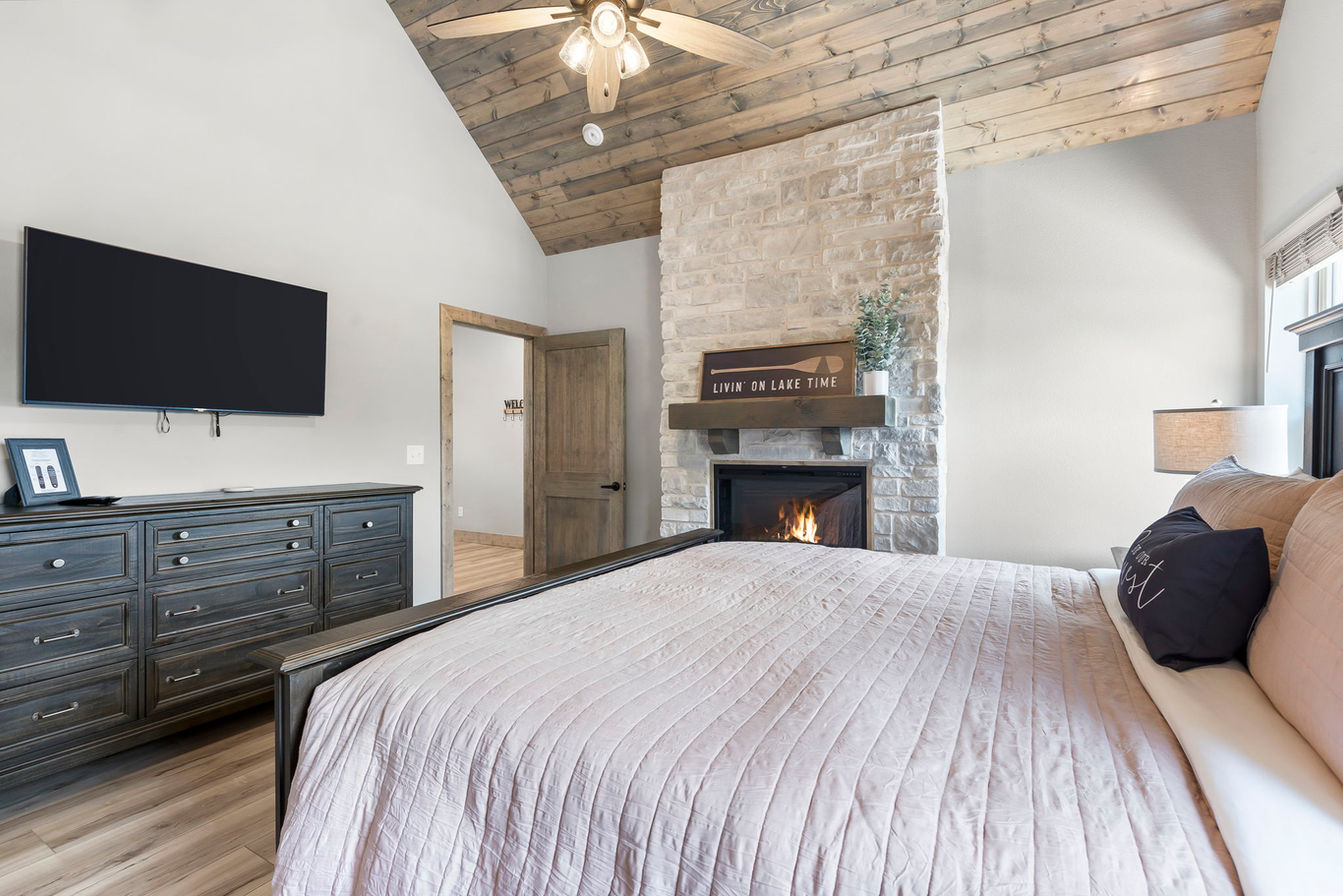 New Summer Bay Development overlooking majestic Table Rock Lake! All one level! Exquisitely appointed new home with luxury combined with comfort. Perfect for family, friends, couples, or other small gatherings. Book now to be one of the first to stay in this exciting new resort! FEATURES: -3 luxurious bedrooms with ensuite bathrooms. Sleeps up to 8. -Private hot tub -Community indoor and outdoor pools (outdoor pool open seasonally) -Outdoor patio with dining and sitting areas -Two electric fireplaces -Stunning Table Rock views -Playground -Pickleball courts -Lake access for fishing, swimming, and boating BEDROOM LAYOUT: -King bedroom with electric fireplace and ensuite bathroom -Queen #1 with ensuite bathroom -Queen #2 with ensuite bathroom -Sleeper sofa in living area LOCATION: - -Conveniently located off of Hwy 165 -10 minutes from Silver Dollar City -20 minutes to Downtown Branson